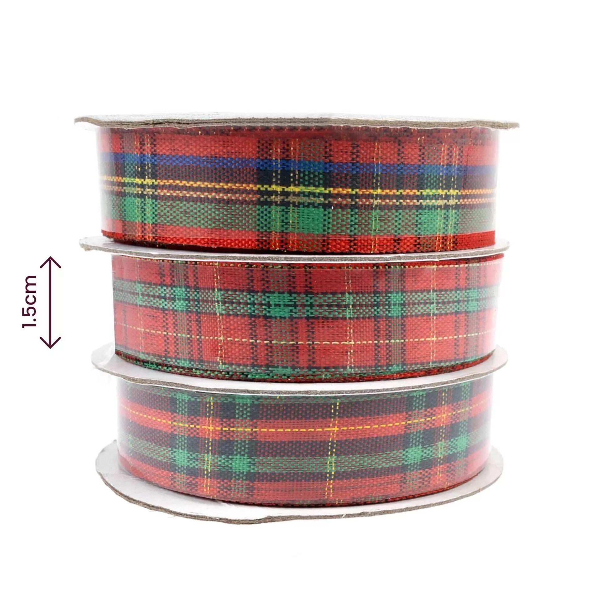 Red And Green Tartan Ribbons 15Mm X 3M 3 Pack