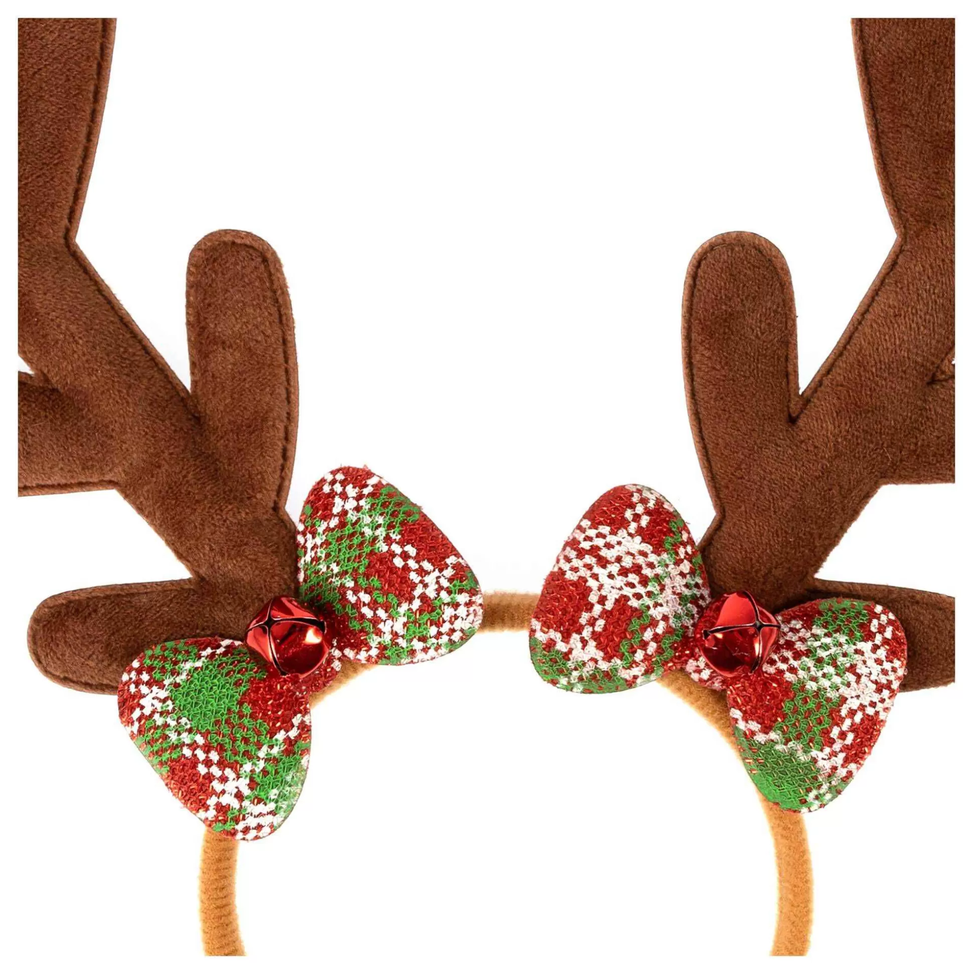 Add A Fun Flourish To Your Christmas Look With This Reindeer Antlers Headband! Easy To Wear, The Headband Features Classic Brown Antlers, With A Charming Tartan Bow And Bells At The Base Of Each One.
