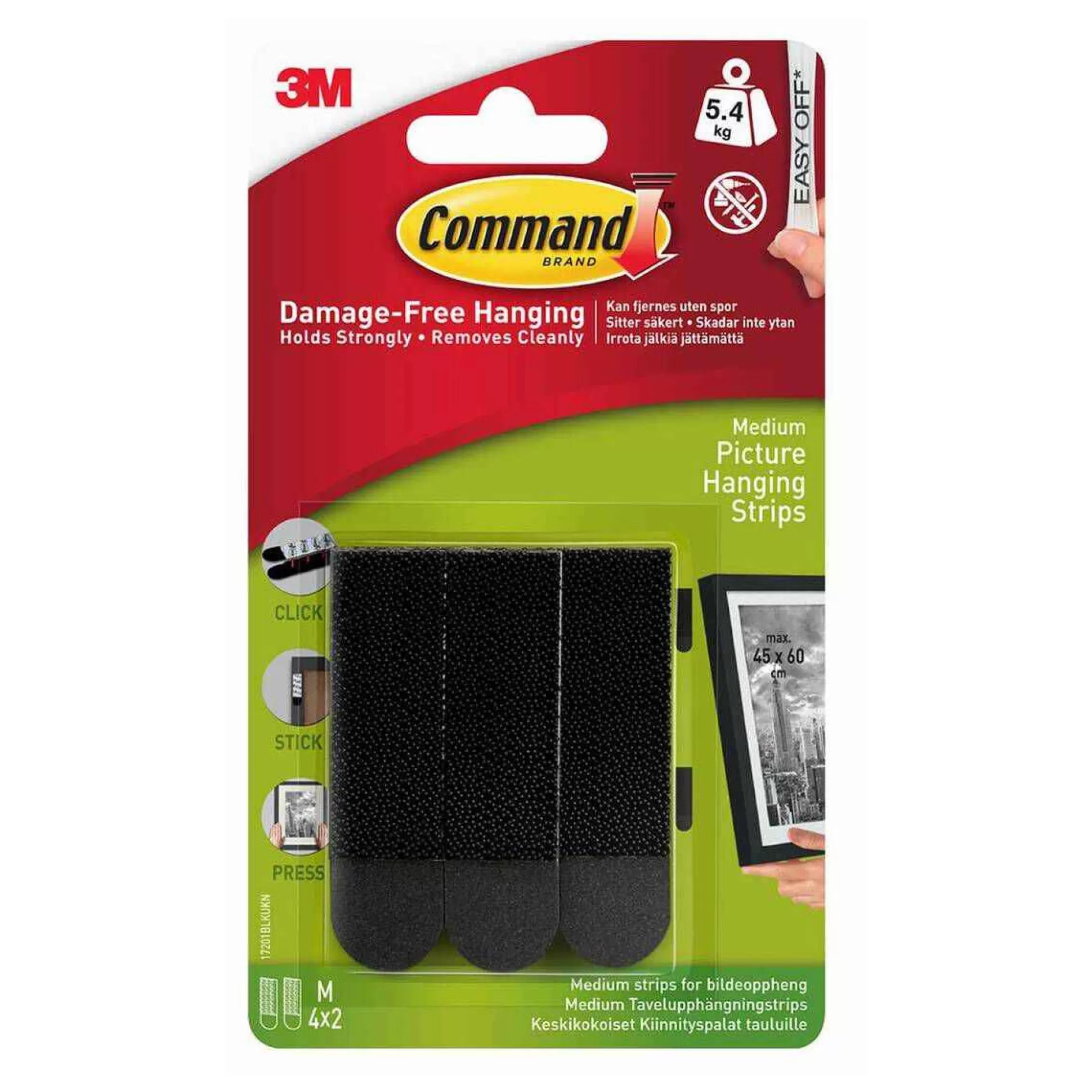 The Command Black Medium Picture Hanging Strips Set Contains Four Strips To Hold Up Your Canvases, Photographs And Art Without Damaging Your Walls. Ideal For Painted Walls, Woods, Metals And Plastic Surfaces, Personalise Your Household Completely Mess-Free!