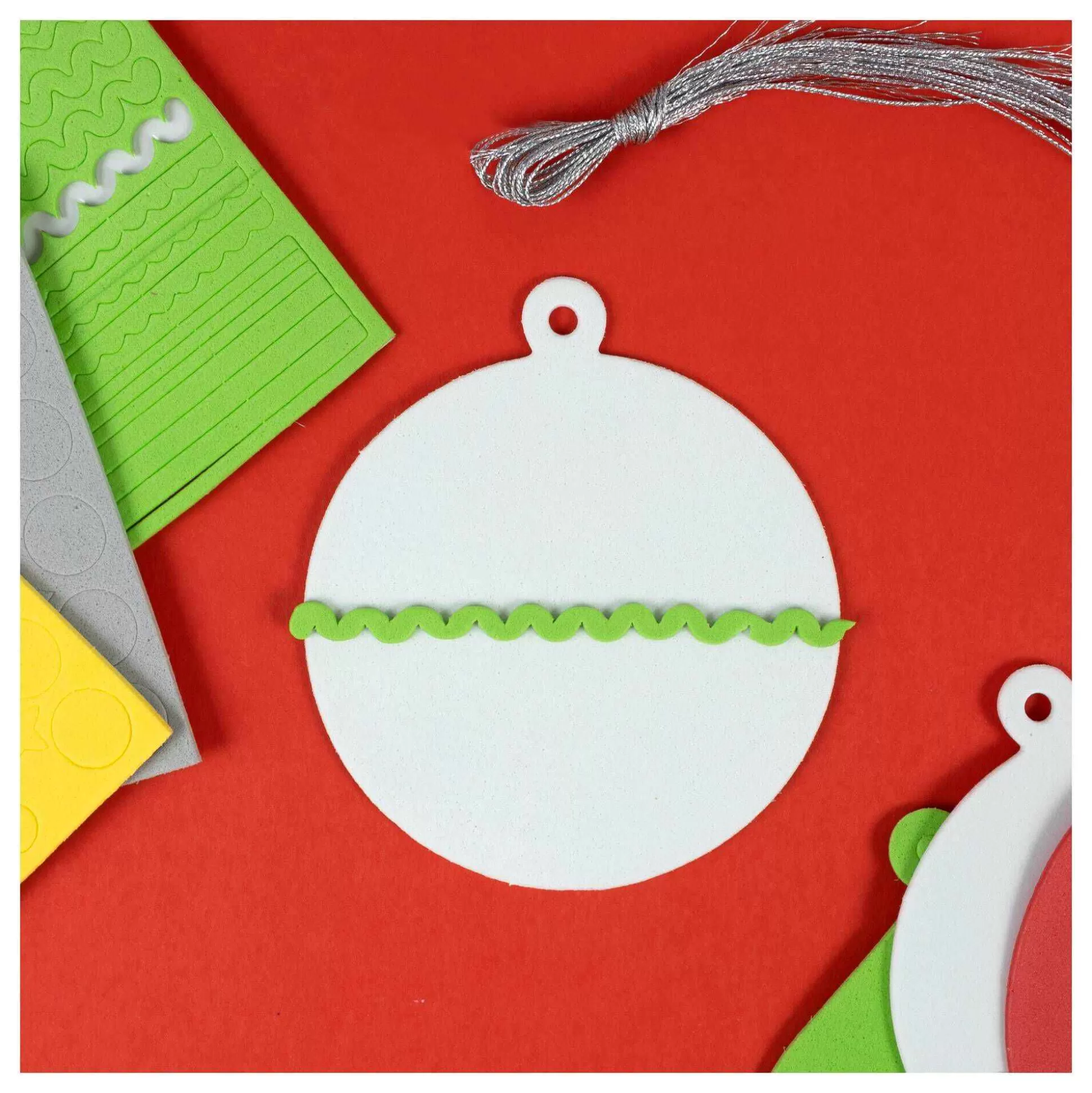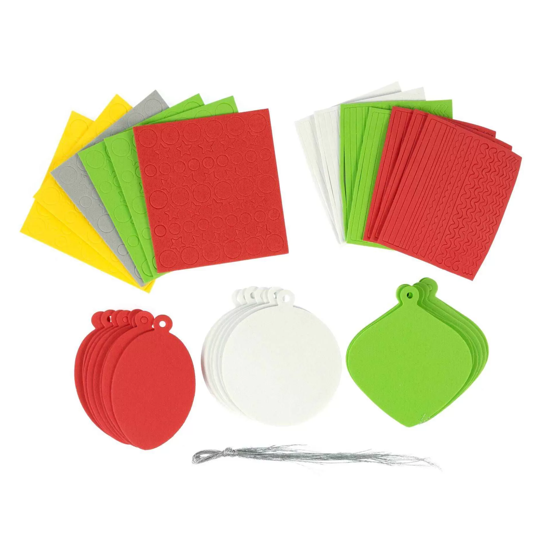 The Kit Contains 40 Foam Pieces, Including A Trio Of Bauble Shapes, Stars, Dots, Zigzags, Lines And Scallops In Red, Green, White, And Silver. Simply Choose A Bauble Shape, Press Out Some Stars, Scallops, Or Shape Of Choice, And Fix The Foam Embellishments With Adhesive To Your Design.