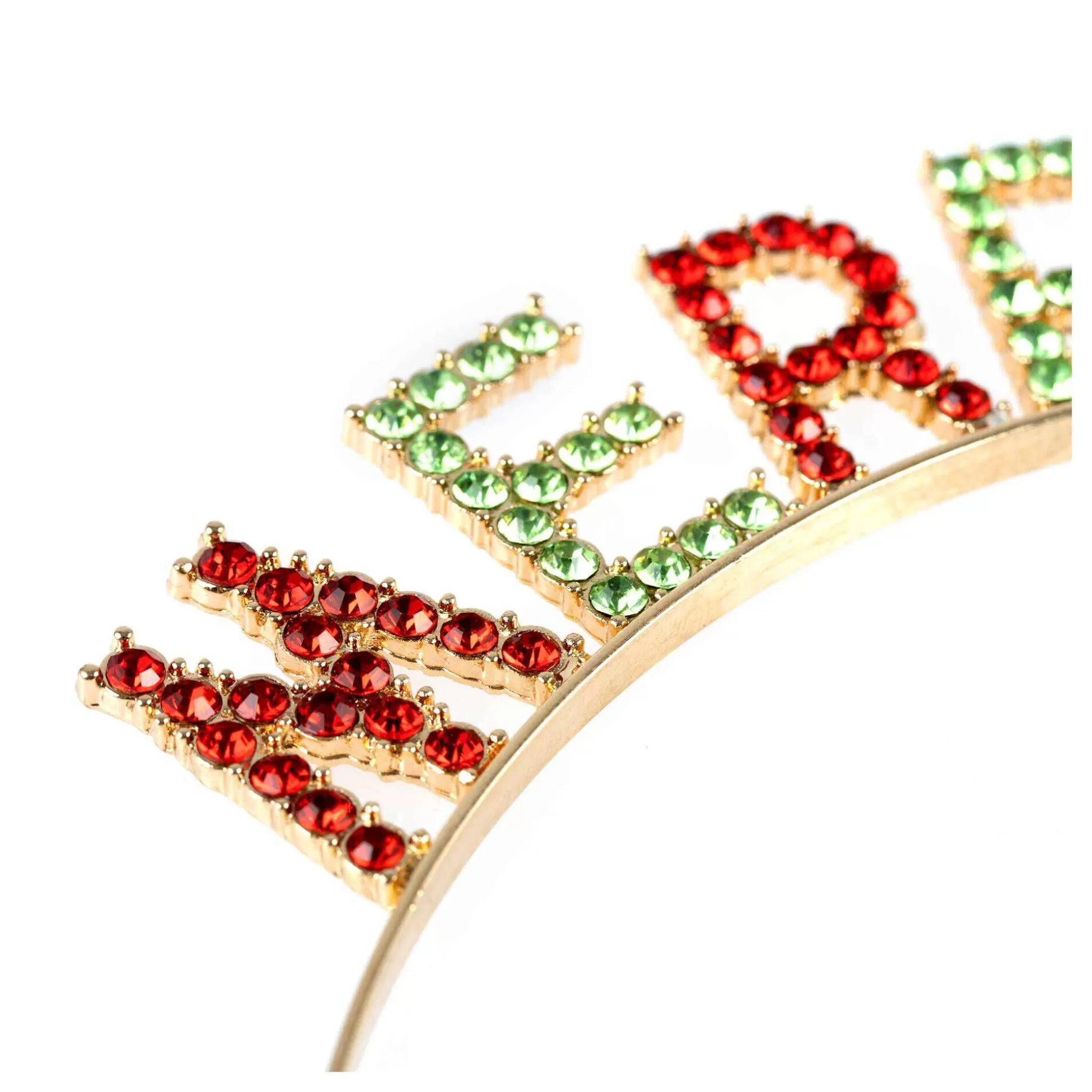 Add A Fun Flourish To Your Christmas Look With This Merry Christmas Headband! Easy To Wear, The Headband Features Green And Red Gem Letters That Spell Out ‘Merry Christmas’.