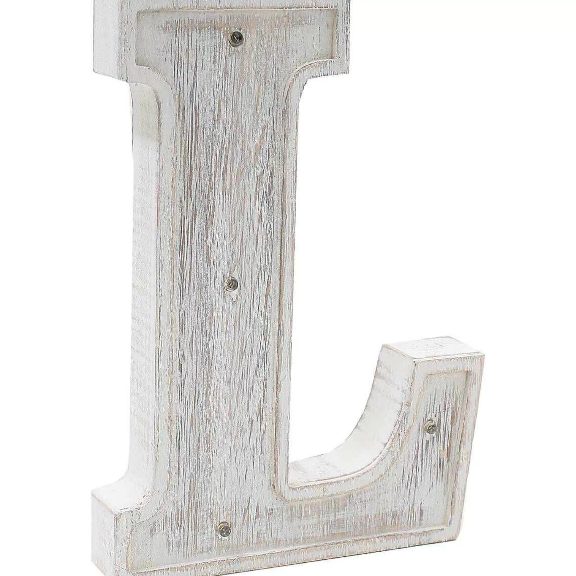 White Washed Wooden Led Letter L 21Cm
