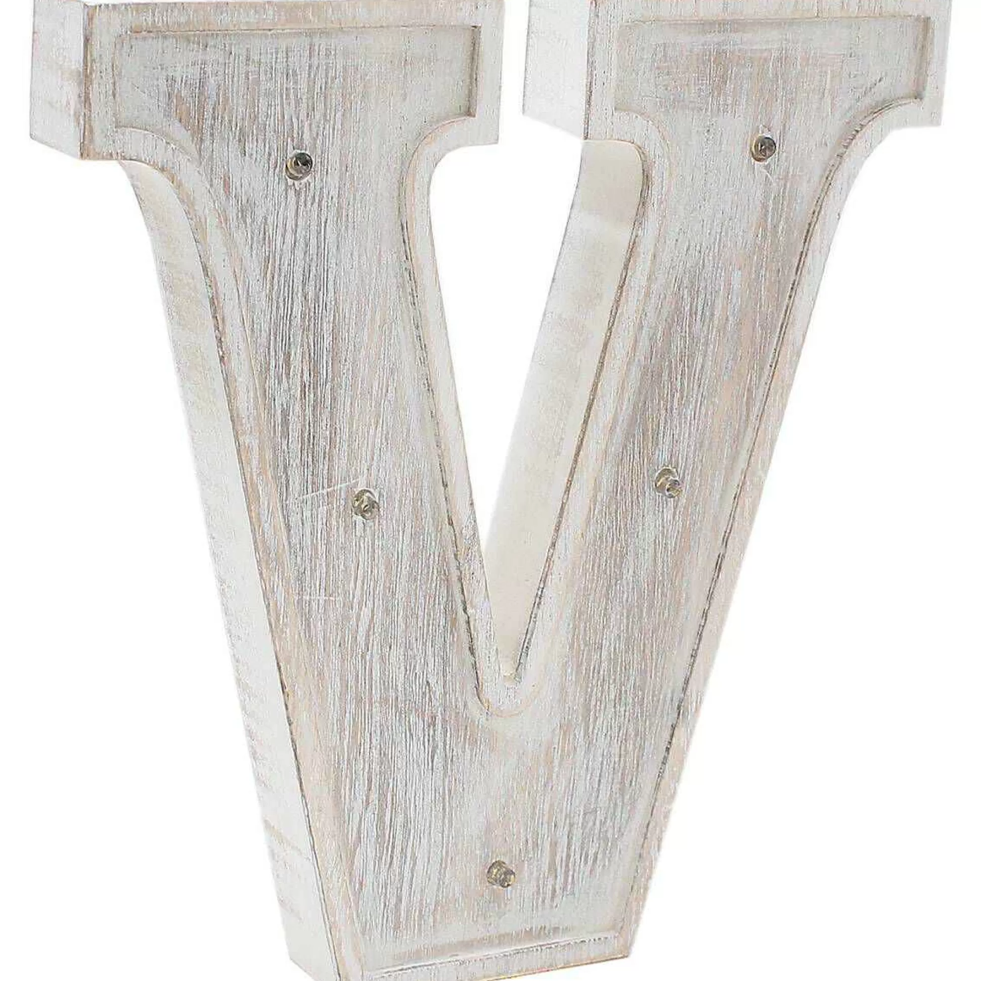 White Washed Wooden Led Letter V 21Cm